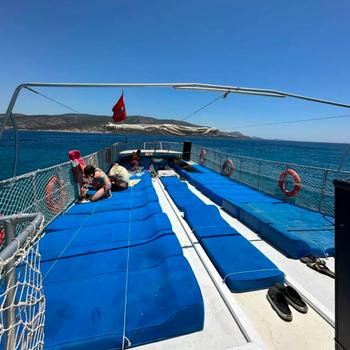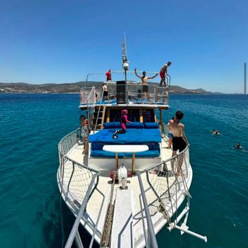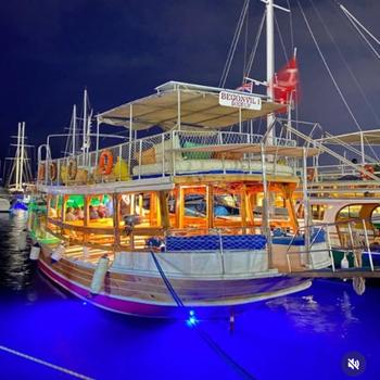 >Bodrum kumbahçe mevkinde halikarnas iskelesinde bağlı bulunmaktadır.teknemiz 54 kapasite olup yukarıda 35 tek kişilik güneşlenme yataklarımız ön tarafta 5 kişilik güneşlenme yatağı bulunmaktadır. 6 kişilik 10 adet oturma gruplarımız vardır. 2 adet bangaça (loca) oturma alanımız vardır