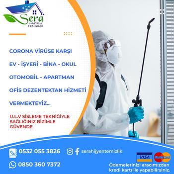 SERA HİJYEN TEMİZLİK👈 Sağlığınız için steril bir ortam yaratıyoruz. Hizmetimiz Garantili ve Sertifikalıdır. Eviniz ortamı dolap içleri el değen her yer,kapılar sürekli kullanım alanlarına kadar dezenfeksiyon işlemi gerçekleştiriliyor. U.LV. ( soğuk sisleme ) ile amaç, ilaçlı suyu ( solüsyon) havada uzun süre ( 8-10 saat) kalacak şekilde partiküllere bölerek hava ile temas süresini uzatıp dezenfeksiyon işleminde kesin sonuca gitmektir. Dezenfekte damlacıkları havada rüzgarın tesiri ile yayıldığından, rüzgar faktörü önem kazanmaktadır. Rüzgarın durgun olduğu sabah ve akşam gün batımı yapılan dezenfeksiyon özellikle uçan insektisitlerin havada yoğun olduğu saatlere rastlar. Saatte 10-15 km. hızla yapılan Dezenfeksiyon idealdir. U.LV sistemi bu değişik özelliklerinden dolayı virüs ile mücadeleni yanında, antiseptik ve deodorantların da atılmasına müsaade eder Steril ve Hijyen bir Ortam yaratmak için