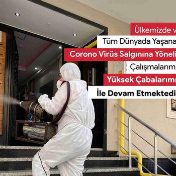 Corona Virüse Karşı Ev- İşyeri - Bina - Okul - Apartman Ve ofis gibi Çalışma ve yaşam alanlarımızı Gerekli tedbirler alınarak itina İile temizliği yapılır.Tercihe göre U.L.V sisleme teknolojisi ile Dezenfeksiyon işlemi gerçekleştirlir