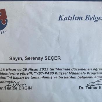 Psikolog Serenay Seçer, TED Üniversitesi Psikoloji (%100 İngilizce) lisans programından ve aynı zamanda Sosyoloji yan dal programından 2022 yılında başarıyla mezun olmuştur. Lisans eğitimi süresince Ankara Adliyesi'nde çocuk ve ergenlere yönelik görüşmelere tanıklık etmiş; bunun yanı sıra Gençlik ve Spor Bakanlığı bünyesinde grup lideri olarak görev alarak, Türkiye’nin dört bir yanından gelen çocuk ve ergenlerle psikolojik sağlamlık çalışmaları yürütmüştür. Uzmanlık Alanları ve Eğitimleri: Serenay Seçer, mesleki gelişimine büyük önem vermekte ve sürekli olarak alanında kendini güncel tutmaktadır. Bu kapsamda: Prof. Dr. Vahdet Görmez’den Çocuk ve Ergenlerde Bilişsel Davranışçı Terapi (BDT) eğitimi almıştır. Bilişsel Davranışçı Terapi (BDT) ve Çocuk Merkezli Oyun Terapisi uygulayıcısıdır. MOXO Dikkat Testi, Attentioner Dikkat Eksikliği Programı uygulayıcısıdır. Özel öğrenme güçlüğü ve DEHB (Dikkat Eksikliği ve Hiperaktivite Bozukluğu) yaşayan danışanlara yönelik YBT-PASS Bilişsel Müdahale Programı uygulayıcısıdır. Çocuk ve Ergen Psikolojisinde Bütüncül Yaklaşım: Serenay Seçer, çocuk ve ergenlerde terapötik sürecin başarılı olabilmesi için bütüncül bir yaklaşımın gerekliliğine inanır. Her bireyin ihtiyaçlarına özel terapi modülleri oluşturarak ilerlemektedir. Seans sürecini, ebeveyn psikoeğitimi ve ebeveyn danışmanlığı ile desteklemektedir.