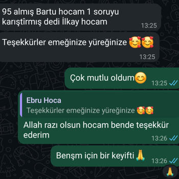 Konunun ezberden ziyade neyin nereden geldiğin mantıkla anlatıldığı ve kalıplaşmış temel sorularla konunun pekiştirilmesi sağlanıp yeni nesil soru çözüm teknikleriyle sınavlarda başarılı olmamız kaçınılmaz olacaktır. Almış olduğum formasyon eğitimi sayesinde veli ve öğrenciyle en iyi şekilde uyum sağlarım. 15 öğrencim olup işimi severek ve özveriyle yapıyorum.