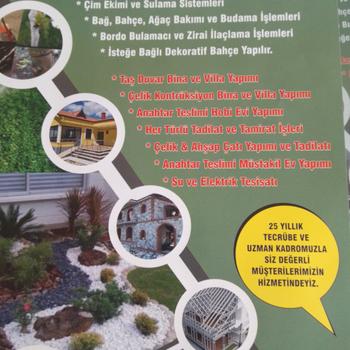 Müstakil ev yapımı hobi bahçesi evi yapımı su ve sulama sistemleri çim ekimi bahçe dizaynı çevre düzenleme her türlü çatı yapımı tamir ve tadilat işleri 25 yıllık tecrübe ve uzman kadromuzla hizmetinizdeyiz