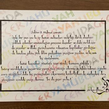 Ben Serkan Albez. Kültür ve Turizm Bakanlığı Kaligrafi Sanatçısıyım. Aynı zamanda Halk Kültürüne kayıtlı Somutlu Olmayan Kültürel Miras Taşıyıcısıyım. 10 yıldır bu sanatı icra ediyorum. Tekirdağ Çorlu da Çorlu Kaligrafi Merkezi olarak birebir veya grup olarak Kaligrafi dersleri vermekteyiz online kaligrafi derslerimizde mevcut. Bunun yanında sanat malzemeleri ve kişiye özel tasarım ürünlerde hazırlamaktayız.