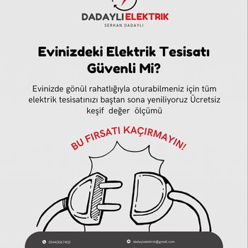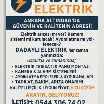 ELEKTRİK HİZMETLERİ Elektrik sorunlarına profesyonel çözümler sunuyoruz. Ev veya iş yerinizdeki elektrik ihtiyaçlarınıza hızlı ve güvenilir bir şekilde yardımcı oluyoruz. HİZMETLERİMİZ Arıza Bakım Led Aydınlatma Kamera sistemleri Pano tesisat montaj Topraklama