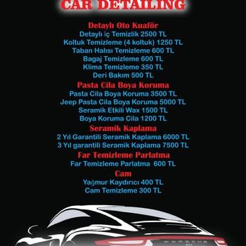 Detaylı pasta cila boya koruma cila seramik etkili wax iki yıl garantili seramik kaplama far temizleme yağmur kaydırıcı detaylı iç temizlik koltuk temizleme taban halısı temizleme bagaj temizleme klima temizleme yapılır