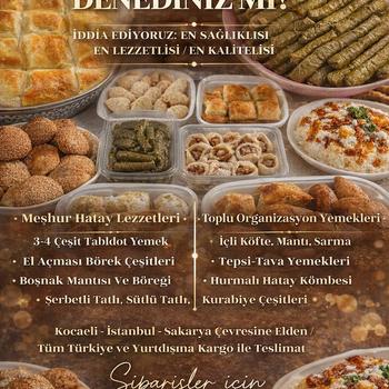 Hatay Mutfağının Eşsiz Lezzetleriyle Sofralarınıza Değer Katıyoruz Hataylı bir üretici olarak, geleneksel tarifleri ev yapımı titizliği ve yüksek kalite anlayışıyla hazırlıyorum. İçli köfte, sarma, mantı, el açması börekler, tepsi yemekleri ve Hatay’a özgü tatlı çeşitleri; tamamı özenle seçilmiş malzemelerle, hijyen standartlarına uygun şekilde üretilmektedir. Özel davetler, toplu organizasyonlar ve günlük yemek ihtiyaçlarınız için güvenle tercih edebileceğiniz lezzetleri zamanında ve özenli şekilde ulaştırıyorum. Doğallık, kalite ve gerçek Hatay lezzeti tek adreste.