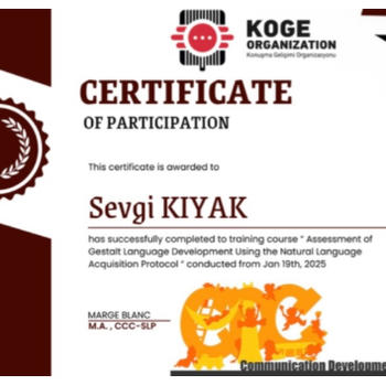 Dil ve Konuşma Terapisi ve aynı zamanda Fizyoterapi ve Rehabilitasyon alanlarında lisans eğitimimi tamamladım. Aynı zamanda Çocuk Gelişimi alanında eğitimime devam ediyorum. Eğitim sürecim boyunca çeşitli kurumlarda gözlem ve uygulama deneyimi kazandım. Terapi sürecinde bireye özel yöntemler kullanıyor, gelişimsel ihtiyaçlara yönelik destek sağlıyorum. Alanımla ilgili gelişmeleri yakından takip ederek, eğitim ve seminerlerle mesleki gelişimime önem veriyorum. Alanında deneyimli bir terapistim.