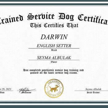 Merhaba sokaktan sahiplendiğim bir English Setter ile geçiyor hayatım yedi yıldır. Artık kendisi yaşlı bir dede ve bakım ihtiyaçları çok arttı. Onunla ilgilendiğim için tam zamanlı kendi kariyerime ara verdim. Ondan arta kalan zamanlarımı da böyle değerlendirebilirim diye düşündüm. Amerikada yaşadığımız süreçte onu Service Dog olarak eğittim ve Türkiye uçuşlarında benimle kabinde seyahat edebileceği sertifikayı almasını sağladım. Bu süreç bana da köpek eğitiminde yetkili sertifikası kazandırdı. İhtiyaç var ise birlikte yürüyüş eğitimi de yapabiliriz.