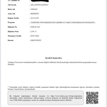Merhaba, ben Psikolog Sıla Konyalıoğlu. Yeditepe Üniversitesi Psikoloji lisans programını (%100 İngilizce) tamamladım. Ardından Yakın Doğu Üniversitesi Klinik Psikoloji Yüksek Lisans programına başladım. Şuan bütün dersleri vermiş ve tez aşamasına geçmiş bulunmaktayım. Uzmanlık eğitiminde zorunlu stajımı Antalya Atatürk Devlet Hastanesi’nde tamamladım. Hem psikoloji biriminde hem de psikiyatri servisinde gözlemler yaptım. Ek olarak Prof. Dr. Mehmet Zihni Sungur tarafından verilen Avrupa Davranış ve Kognitif Terapileri Birliği (European Association for Behaviour and Cognitive Therapies - EABCT)’nin eğitim standartlarına göre düzenlenen Kognitif ve Davranış Terapileri (KDT) kursunun ilk bölümünde teorik eğitime devam etmekteyim. (Depresyon ve Anksiyete Bozukluklarının (Panik Bozukluk, OKB, Sosyal Fobi, Yaygın Anksiyete Bozukluğu ve TSSB gibi) anlaşılması ve tedavisi.)