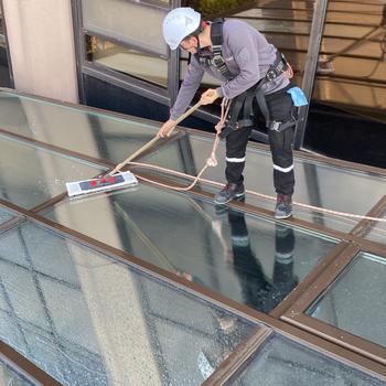 Güvenilir profesyonel cam temizligi son sistem ekipmanlarla calısıyoruz iskele vinc ile detaylı silme yapıyoruz