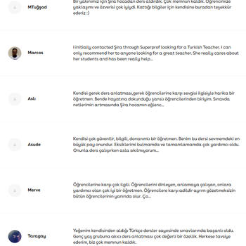 Are you an European who wants to learn Turkish? The teacher you are looking for is here. I have experience of teaching Turkish with students from European countries such as Spain and Germany. Please contact me for a trial lesson. Yabancılara Türkçe eğitimi konusunda tecrübeliyim. Türkçeyi anadili dışında öğrenmek isteyen herkes ile çalışabiliriz. Deneme dersi için talepler kısmından ulaşabilirsiniz. Türk Dili ve Edebiyatı ve Türkçe alanında her yaş grubu öğrenciyle ders yapabiliriz. Konu anlatımı ve daha sonrasında konu ile bağlantılı soru çözüm teknikleri ile çalışmanın daha iyi olacağını düşünüyorum. Farklı konularda farklı soru tipleri olduğundan dolayı çalışmaların konu anlatımı-soru çözümü şeklinde ilerlemenin daha yararlı olacağını biliyorum. Öğrenci ile iletişim konusunda kendime güveniyorum. Deneme dersi için talepler kısmından ulaşabilirsiniz.