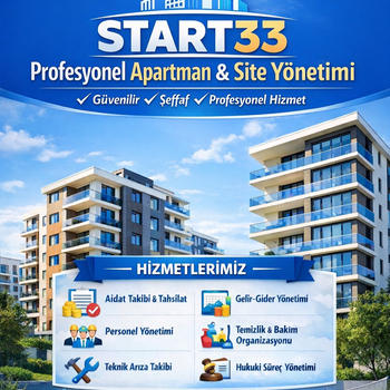 Start33 Profesyonel Apartman & Site Yönetimi olarak, apartman ve site yaşamında düzeni, güveni ve memnuniyeti ön planda tutarak profesyonel yönetim hizmetleri sunuyoruz. Amacımız; yöneticilik süreçlerini şeffaf, planlı ve çözüm odaklı şekilde yürüterek kat maliklerinin yükünü hafifletmek ve yaşam alanlarını daha konforlu hale getirmektir. Aidat takibi, gelir-gider yönetimi, resmi evrak işlemleri, personel yönetimi, bakım-onarım organizasyonları, temizlik ve güvenlik koordinasyonu gibi tüm yönetim süreçlerini titizlikle yürütüyor; modern yazılım sistemleri ile raporlanabilir ve denetlenebilir hizmet sağlıyoruz. Deneyimli ekibimizle her siteye özel çözümler üreterek, ihtiyaçlara uygun yönetim modeli oluşturuyoruz. Düzenli iletişim, hızlı geri dönüş ve güvenilir hizmet anlayışımız sayesinde sakinlerin huzurlu bir yaşam sürmesini hedefliyoruz. Start33 Profesyonel Apartman & Site Yönetimi olarak, yaşam alanlarınıza değer katmak, yönetimde kaliteyi hissettirmek ve sürdürülebilir memnuniyet sağlamak için yanınızdayız.