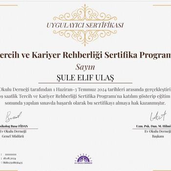 Merhaba ben Şule. Bolu Abant İzzet Baysal Üniversitesi Rehberlik ve Psikolojik Danışmanlık bölümü mezunuyum. Aile ve Sosyal Hizmetler Müdürlüğü'nde staj yaptım. Okul stajı kapsamında 2 dönem ilkokul ve lise olmak üzere stajımı tamamladım. Yine aynı şekilde 2 dönem supervizyon eşliğinde danışanlara terapi hizmeti sağladım. Kendimi geliştirerek ve eğitim alarak ilerlemekteyim. Tercih ve kariyer danışmanlığı uygulayıcı eğitimini tamamlayarak desteğe ihtiyacı olanlara hizmet vermekten memnuniyet duyuyorum.
