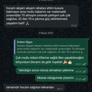 Marmara Üniversitesi İlköğretim Matematik Öğretmenliği mezunuyum. Matematik öğretmenliği alanında uzun yıllara dayanan deneyimimle, her seviyede öğrenciye özel ders veriyorum ve başarılarını destekliyorum. İlk dersimde öğrencimin mevcut bilgi düzeyini analiz eder ve eksik olduğu konuları belirleyerek kişiye özel bir çalışma planı hazırlarım. LGS ve YKS gibi önemli sınavlara hazırlanan öğrencilerime yönelik, sınavın yeni nesil soru tiplerine uygun sorularla derslerimizi şekillendiriyorum. Ders Planım: Öğrencinin eksik olduğu konularda yoğunlaşarak, anlamadığı noktaları adım adım çözmek. Düzenli ödevler, deneme sınavları ve geri bildirimlerle gelişim takibi. Yazılı sınavlara özel çalışmalar ve kişiye özel sınav stratejileri. Motivasyon artırıcı yaklaşımlar ile birlikte, her derste daha verimli olmayı hedefliyorum. Eğitim Süreci: Her dersin sonunda, öğrencim sadece konuyu öğrenmekle kalmaz, aynı zamanda konuyu gerçek sınav ortamında nasıl uygulayacağını da kavrar. Başarıya giden yolda, her zaman birlikte etkili bir süreç geçireceğimize inanıyorum. Hem online hem de yüz yüze özel ders vermekteyim.