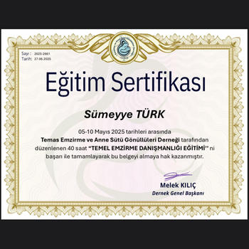 Ben Sümeyye Türk. Ebelik bölümü mezunuyum ve doğumun mucizevi yolculuğunda anne adaylarının en doğal, en güvenli ve en bilinçli şekilde ilerlemeleri için yanlarında yer alıyorum. Emzirme danışmanı olarak annelere doğum sonrası süreçte hem fiziksel hem duygusal anlamda destek sağlarken; doğum koçu kimliğimle de doğum öncesi hazırlık sürecinde annelere ve eşlerine bilinçli, sevgi dolu bir rehberlik sunuyorum. Amacım; kadının bedenine, gücüne ve doğumun doğal akışına güven duymasını sağlamak, doğumu bir korku değil, güçlenme ve bağ kurma süreci olarak yaşamasına yardımcı olmak. Aynı zamanda babaların da bu sürecin sevgi dolu ve destekleyici bir parçası olmalarını önemsiyorum.Her ailenin doğum hikâyesinin özel ve biricik olduğuna inanıyor, her adımda yanınızda olmaktan mutluluk duyuyorum.