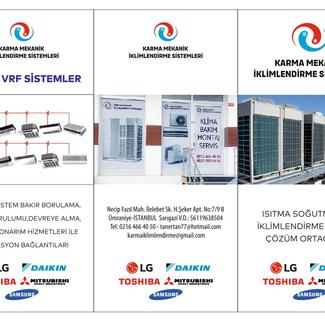 Karma Mekanik İklimlendirme Sistemleri olarak Bireysel sistemler,Vrv ve Vrf sistemler başta olmak üzere tüm klima alt yapısı,sistem kurulumu,otomasyon bağlantısı ile devreye alma ve sorun giderme hizmeti vermekteyiz. Halen daha çalışmakta olduğumuz firmalar ve referanslarımız mevcuttur.