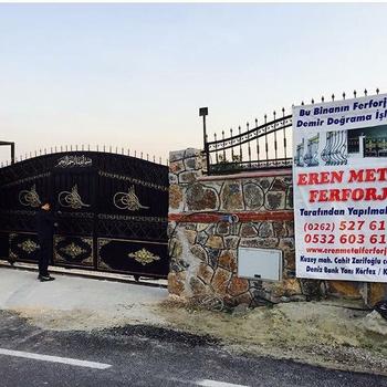 Eren metal ferforje merkezi kocaeli körfez ilçesindedir. Kurucusu Tarık Ergül dür.2000 li yılların başlarında demir doğrama, ferforje, çelik imalat, kaynak işlerinde tecerübe edindikten sonra, bu alanlarda hizmet veren Eren Metal Ferdorje adında işyerini kurmuştur. Kısa zamanda göz kamaştıran ferforje çelik villa dublex ev tasarımlarıyla dikkat çeken Tarık Ergül firmasını Körfezden Kocaeli ve tüm Marmaraya tanıtmıştır.Ferforje, küpeşte, telçit, çelik imalat, korkuluk ve bina kapıları, merdivenler ve özel projeler hizmet alanlarıdır. Eren Metal Ferforje iş ve işçi sağlığı ve güvenliği konusundaki hassas çalışma stiliyle müşterilerine güven vermektedir. Önce işçi saglığı ve iş güvenliği, kaliteli imalat, zamanında teslimat , müşteri memnuniyeti ilkeleri arasındadır. Taksit vade şecenekleriyle ödemede kolaylık seçenekleriyle daima müşteri odaklı çalışmaktadır.