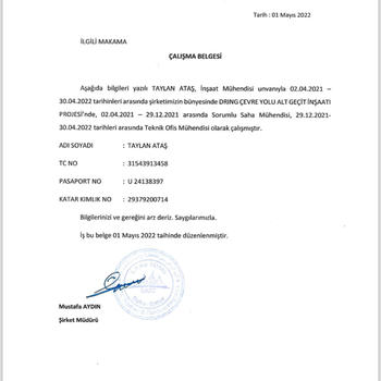 Çok iyi derecede İngilizce diline hakim bir inşaat mühendisiyim. Sadece İngilizce’ye değil aynı zamanda Ofis uygulamaları, Sap2000, ETABS, Revit ve Autocad uygulamalarına da hakimim. Daha önce yurt içi ve yurt dışı saha mühendisliği tecrübelerim oldu, askerliğimi de yedek subay olarak ve alay komutanımdan bizzat iki kez takdir alarak bitirdim. Uzaktan ve iş başı çalışmalara müsaitim.