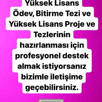 Merhabalar, 12 yıllık akademik tecrübe ile hem lisans hem de yüksek lisans alanlarında tez, proje ve ödev yazımı hizmeti vermekteyim. Özellikle Eğitim Bilimleri ve Sosyal Bilimler alanlarındaki çalışmalara akademik destek vermekteyim. Detaylı bilgi için “Tez ve Proje Hocası” instagram sayfası üzerinden iletişime geçebilirsiniz. Görüşmek üzere.