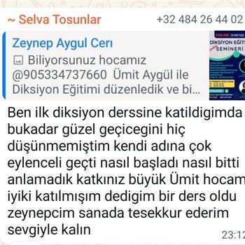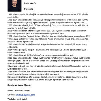 Oyunculuk ve diksiyon eğitmenliği yaptım. Halen Online ve yüz yüze diksiyon eğitimi vermekteyim. Türkiyenin çeşitli illerinde ve ABD, Belçika, Almanya, İsviçre, Fransa, Katar gibi birçok ülkede yaşayan katılımcılara online etkili ve güzel konuşma eğitimi verdim. Katılımcıların eğitim hakkındaki yorumlarını @umit_aygul adlı youtube kanalımdan izleyebilirsiniz.