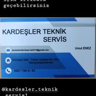 Bayrampaşa Altıntepsi Mahallesi'nde açmış olduğumuz kardeşler tekniği sizlere sunmaktayız.Klima beyaz eşya ve ankastre setlere montaj arıza iş ayırtmak sizin hizmet sunmaktayız . Kardeşler teknik özel servisimiz yeni açılmıştır . İtinayli işcilik ve güler yüzlü hizmet etmekten mutluluk duyarız .