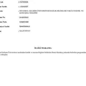 İstanbul Gelişim Üniversitesi Dil ve Konuşma Terapisi bölümünden lisans mezunuyum. Yüksek lisans eğitimimi Özel Eğitim Anabilim Dalı'nda, Erken Çocuklukta Otizm Spektrum Bozukluğu bilim dalında tamamladım. 2020 yılından bu yana aktif olarak dil ve konuşma terapisti olarak çalışmaktayım. Dil ve konuşma danışmanlığı, özel ders ve özel eğitim merkezlerinde geniş bir yelpazede hizmet vermekteyim. Uzmanlık Alanlarım: Akıcılık Bozuklukları: Kekemelik, Hızlı Bozuk Konuşma Konuşma Sesi Bozuklukları: Artikülasyon, Fonolojik Bozukluklar, Çocukluk Çağı Apraksisi Motor Konuşma Bozuklukları: Dizartri, Apraksi Dil Bozuklukları: Gelişimsel Dil Bozukluğu, Edinilmiş Dil Bozukluğu (Afazi) İkincil Nedene Bağlı Dil Bozuklukları: Otizm, Down Sendromu ve diğer nedenlere bağlı dil sorunları Yutma ve Beslenme Bozuklukları Ses Bozuklukları Rezonans Bozuklukları: Dudak-Damak Yarıklıkları Alternatif ve Destekleyici İletişim (ADİS) İnstagram: @dilvekonusmauzmani Websitesi: dilvekonusmauzmani.com