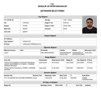 Ege Üniversitesi Antrenörlük Eğitimi Bölümü mezunuyum. Mezun olduktan sonra yurt dışı programlarında ihtisas stajı yaptım. 5-65 yaş arası bireylerde; temel eğitim, ileri seviye eğitim ve performans eğitimi olmak üzere 3 ayrı kategoride 4 stil üzerinde eğitim vermekteyim. 10 yıldır yüzme ve fitness branşlarının öğretim, gelişim ve performans alanlarında aktif olarak çalışmaktayım.