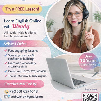 Native English Teacher | TESOL Certified | Fun & Interactive Online Lessons Hello! I am a native English speaker from South Africa and a qualified TESOL-certified teacher with extensive experience teaching children, teenagers, and adults. My lessons are fun, interactive, and personalized. I focus on helping students improve their speaking confidence through engaging conversations, interactive activities, and practical exercises. I create a friendly and supportive environment where students feel comfortable and motivated to learn. I teach all levels, from beginners to advanced, including speaking practice, school support, and Business English. All lessons are conducted online and tailored to your individual goals. I look forward to helping you improve your English with enjoyable and effective lessons! Ana Dili İngilizce Olan Öğretmen | TESOL Sertifikalı | Eğlenceli ve İnteraktif Online Dersler Merhaba! Ben Güney Afrika’dan ana dili İngilizce olan ve TESOL sertifikasına sahip, çocuklara, gençlere ve yetişkinlere ders verme konusunda geniş deneyime sahip bir İngilizce öğretmeniyim. Derslerim eğlenceli, interaktif ve tamamen öğrencinin ihtiyaçlarına göre kişiselleştirilir. Öğrencilerin konuşma özgüvenini geliştirmelerine yardımcı olmaya odaklanırım. Derslerimde ilgi çekici konuşmalar, interaktif aktiviteler ve pratik egzersizler kullanırım. Öğrencilerin kendilerini rahat, güvende ve motive hissettikleri samimi ve destekleyici bir öğrenme ortamı oluştururum. Başlangıç seviyesinden ileri seviyeye kadar tüm seviyelere ders veriyorum. Konuşma pratiği, okul desteği ve İş İngilizcesi konularında yardımcı oluyorum. Tüm dersler online olarak yapılır ve öğrencinin bireysel hedeflerine göre planlanır. Keyifli ve etkili derslerle İngilizcenizi geliştirmenize yardımcı olmayı sabırsızlıkla bekliyorum!