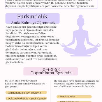 Çalışmalarımıza başladıktan sonra size özel (tamamen kişiye özel hazırlanmaktadır.) kendi üzerinizde çalışabileceğiniz egzersiz kitapları hazırlıyorum. Psikoloji lisans eğitimimin son senesindeyim ve edindiğim bilgi ve deneyimleri danışanlarımla paylaşmaktayım. Şu ana kadar 100’den fazla danışanla bireysel seans deneyimim oldu. Stres yönetimi, kaygıyla başa çıkma, hedef belirleme, motivasyon artırma gibi konuların yanı sıra yaşam koçluğu alanında da eğitimler aldım ve uygulamalı çalışmalar yaptım. Danışanlarımla çözüm odaklı, empatik ve güvene dayalı bir süreç yürütüyor, psikoloji eğitimimden edindiğim bilimsel bakış açısını yaşam koçluğu teknikleriyle birleştirerek hedeflerinize ulaşmanız için etkili bir destek sunuyorum. Kendinizi daha iyi tanımak, potansiyelinizi açığa çıkarmak ve yaşamınıza yeni bir yön vermek isterseniz birlikte çalışabiliriz.