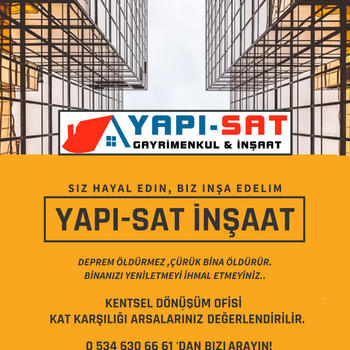 KENTSEL DÖNÜŞÜM OFİSİ İstanbul’a değer katmak için kentsel dönüşümde de varız. YAPI-SAT İNŞAAT , Kat Karşılığı arsa konut projelerine ek olarak inşaat sektörünün son yıllarda üzerine eğildiği yerinde kentsel dönüşüm projelerine de girdi. YAPI-SAT İNŞAAT , hayata geçirdiği diğer tüm projelerde olduğu gibi kentsel dönüşüm projelerini de “KENTE DEĞER KATMAK” vizyonu ile gerçekleştirmeyi hedefliyor. YAPI-SAT İNŞAAT imzası ile gerçekleştirilen kentsel dönüşüm projelerinde ilk olarak çok kapsamlı bir ön çalışma yapıyor, bölgenin ihtiyaç ve dinamikleri alanında uzman kişilerce birlikte değerlendiriliyor. Arsa ve kat maliklerinin beklentileri de göz önünde bulundurularak; Türk aile yapısına uygun, bazı projelerde sosyal altyapısı ve donatı alanları düşünülmüş, yaşamı ve Kaliteyi merkez alan bir kentsel dönüşüm projeleri ortaya çıkıyor. Hemen ardından inşaat süreci başlıyor ve inşaat teknolojilerindeki gelişmelerin de yardımıyla hızla ve kaliteden ödün verilmeden tamamlanıyor. Bu şekilde hem depreme dayanıklı yeni konutlar üretiliyor hem de yeni yaşam ve yatırım alanları hayata geçirilmiş oluyor.