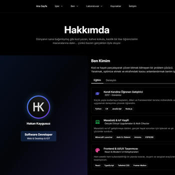 7 yıldır yazılım geliştirme alanında aktif olarak projeler üretiyorum. Bu süreçte hem ön uç hem de arka uç tarafında farklı ölçekte çalışmalar yaparak uçtan uca ürün geliştirme deneyimi kazandım. Python üzerinde güçlü bir hakimiyetim olsa da asıl uzmanlık alanım modern web teknolojileri; React ekosistemi, JavaScript ve Node.js üzerinde derinleşmiş durumda.