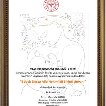 Aile hekimliğinde emzirme danışmanlığı eğitimim ve bebek dostu sertifikam mevcuttur.