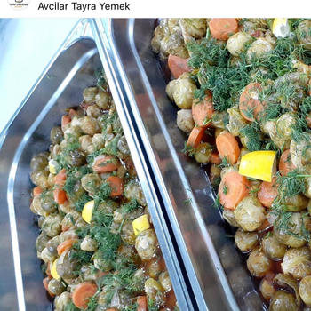 Tabldot Yemek Yerinde üretim ve hazır yemek sistemi ile işletmelere , Mutfak bulundurmayan firmalarda ekibine yemek vermek isteyen firmalara tabldot yemek hizmeti sunmaktayız.Tabldot yemek servislerimizde servis tabakları, çatal kaşık vb eşyalar ve yemeği sıcak tutan malzemeyle(Termobox) birlikte sunmaktayız. Hazırlanan menü firma isteklerine uygun hazırlanarak isteğe bağlı olarak 3 çeşit, 4 çeşit veya 5 çeşit servis yapılabilmektedir.her türlü yemek ihtiyaçlarınızda TAYRA YEMEĞİN size göre bir çözümü mutlaka vardır TAYRA YEMEK gıda mühendisi kontrolünde gerçekleştirilen üretim sürecinden yemeklerin servisine kadar her aşamada aynı özenli çalışmayı sürdürerek her zaman kalite çizgisini korumaktadır. TAYRA YEMEK uzman kadrosu, usta aşçıları, kalite ve hijyen politikasıyla yıllardır sizlere hizmet vermeye devam etmektedir.