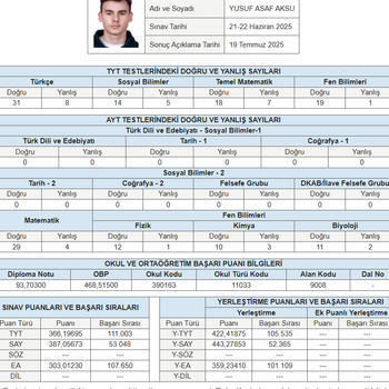 YKS Koçluk & Sayısal Strateji Planlama (Matematik & Geometri) Sınav süreci sadece soru çözmek değil, bir süreç yönetimidir. Merhaba, ben Yusuf Asaf Aksu. İYTE Enerji Sistemleri Mühendisliği öğrencisiyim. Kendi sınav senemde uyguladığım disiplin ve doğru stratejiyle sıralamamı 97 bin bandından 52 bine çekerek hedeflerime ulaştım. Şimdi bu tecrübeyi, başarıya giden yolu kısaltmak isteyen öğrencilerle paylaşıyorum. Koçluk Yaklaşımım: Analiz, Strateji ve Sonuç Bir öğrencinin en büyük ihtiyacı, "ne çalışacağı" kadar "nasıl çalışacağını" bilmektir. Koçluk sürecimizde şu başlıklara odaklanıyoruz: Bireysel Yol Haritası: Öğrencinin mevcut seviyesini analiz ederek, eksik konulara göre haftalık ve aylık gerçekçi programlar hazırlıyorum. Net Artışı Odaklı Takip: Deneme analizleri üzerinden hangi konudan kaç soru kaçıyor, nerede dikkat hatası yapılıyor tespit ediyor ve nokta atışı ödevlendirme yapıyoruz. Kaynak Yönetimi: Piyasadaki yüzlerce kaynak arasından öğrencinin seviyesine en uygun olanları seçiyor, vakit kaybetmesini önlüyorum. Sınav Psikolojisi & Motivasyon: Bir "abi" ve mentor olarak, motivasyon düşüklüğünde veya kaygı anlarında öğrencinin yanında oluyor, süreci mental olarak da yönetiyoruz. Akademik Destek: Matematik & Geometri Özel Ders Koçluk verdiğim öğrencilerle program dahilinde veya talep doğrultusunda Matematik ve Geometri özel dersleri de yürütüyorum. Mantık Odaklı Anlatım: Mühendislik vizyonuyla, formülleri ezberletmek yerine işin mantığını ve "nedenini" anlatıyorum. Yeni Nesil Soru Çözümü: ÖSYM'nin son yıllardaki soru tarzına uygun, yorum kabiliyetini geliştiren pratik yöntemler gösteriyorum. Geometri Uzmanlığı: Geometrideki "görme" sorununu, sistemli bir bakış açısıyla kalıcı bir yeteneğe dönüştürüyoruz.