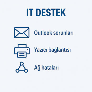 Kurumsal deneyime sahip bir IT uzmanı olarak bilgisayar ve ağ sorunlarına pratik çözümler sunuyorum. Outlook, yazıcı, internet, program kurulumu gibi konularda uzaktan destek verebilirim. Hızlı müdahale ve kullanıcı dostu anlatımla çalışırım. Profesyonel destek arıyorsanız doğru yerdesiniz.