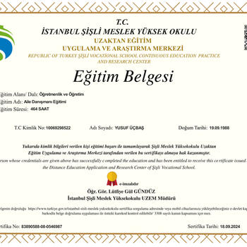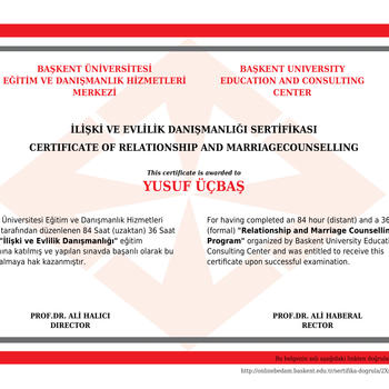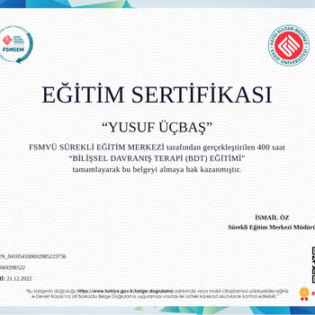Merhabalar oniki yıldır terapi beş yıldır egitim vermekteyim. Terapilerde sorunlar ile değil sorunlara sebep olan konularla süreci devam ettiriyorum İlk seansta kişilik testi yapıyoruz yaptığımız bu test çiftlerde ilk seansta partnerimiz ile nasıl iletişime geçmemiz gerektiğini ögretmiş oluyor dolayısıyla sonuca daha çabuk ulaşmamızı sağlıyor. Sosyal medya hesaplarımız INSTAGRAM: ECEEGİTİMAKADEMİ INSTAGRAM: ECEAİLEDANİSMANLİGİİ TİKTOK : YUSUF_UCBAS