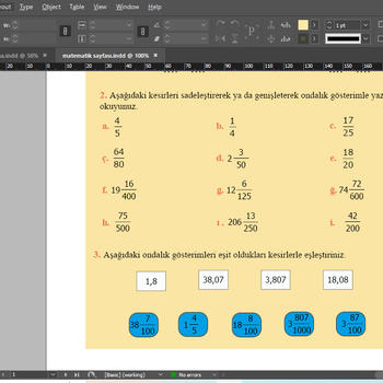 Indesign programı ile kitap, dergi, gazete dizgisi işleriniz özenle yapılmaktadır, bunun yanı sıra Illustrator ve Photoshop programında hazırlanan kapak tasarımları ve dizgisi yapılacak kitapta kullanılacak illustrasyonlar ile tasarım ve dizginiz tamamlanmış olur. Diğer özellikler; *Güvenilirlik *Yenilikçi ve özgün olmak *Detay odaklı çalışabilmek, *İş teslim takvimine uygun çalışmak, *Hızlı klavye kullanabilmek, *El - göz koordinasyonuna sahip olmak