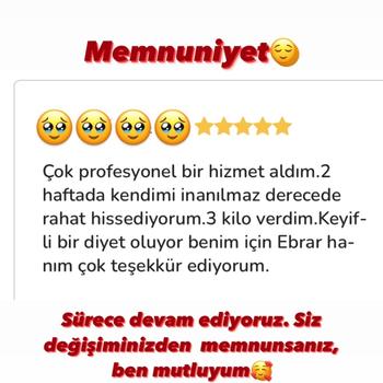 Merhaba! Ben Diyetisyen Ebrar Selamet. Online Beslenme ve Diyet Danışmanlığı ile sizlere hizmet vermekteyim. Sağlıklı ve sürdürülebilir beslenme için bir telefon uzağınızdayım. Beslenme alışkanlıklarınızı değiştirmek, kilo yönetimini sağlamak, daha sağlıklı bir yaşam tarzı benimsemek istiyorsanız benimle iletişime geçebilirsiniz.